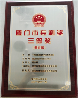 | 廈門市專利獎(jiǎng)三等獎(jiǎng) | 2016年度廈門市科技進(jìn)步獎(jiǎng)貳等獎(jiǎng) | 2018年度廈門市科技進(jìn)步獎(jiǎng)叁等獎(jiǎng) |