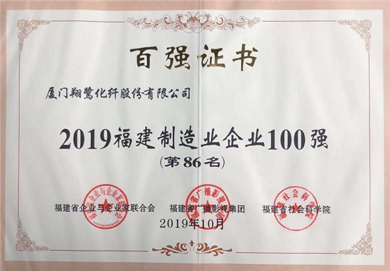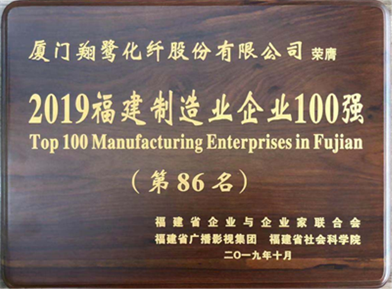 廈門翔鷺化纖股份有限公司榮獲“2019福建制造業(yè)企業(yè)100強(qiáng)”