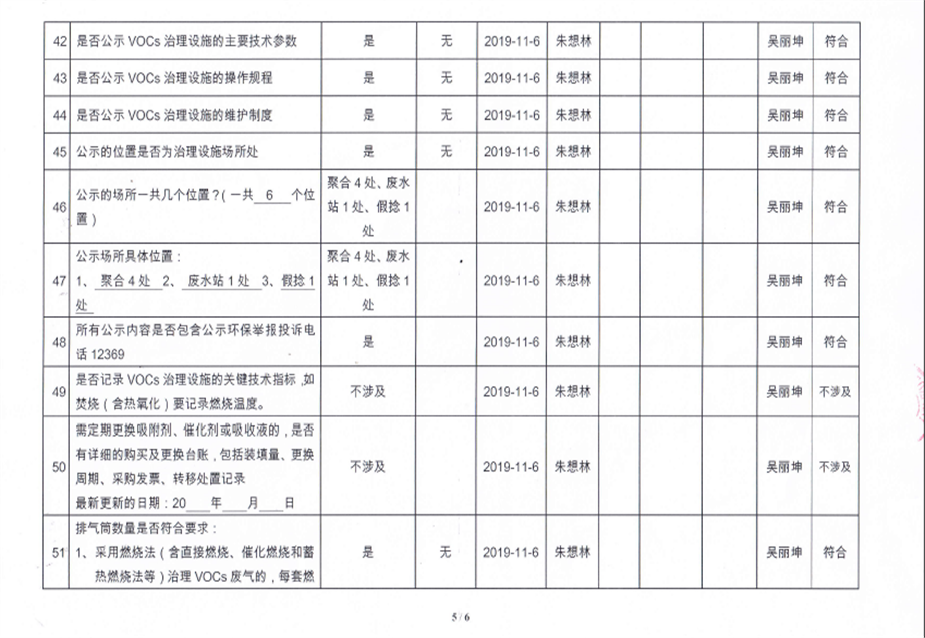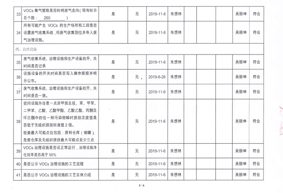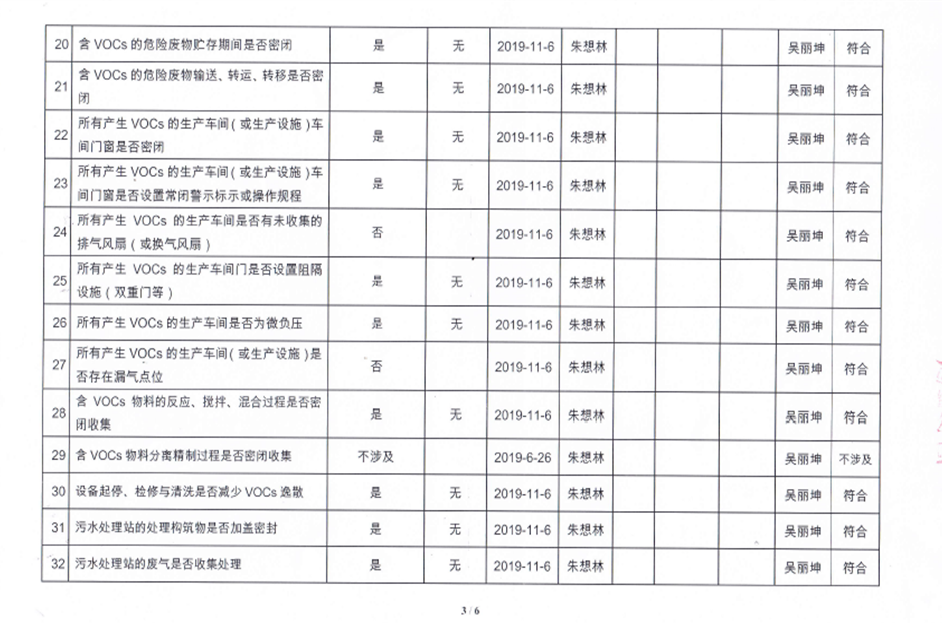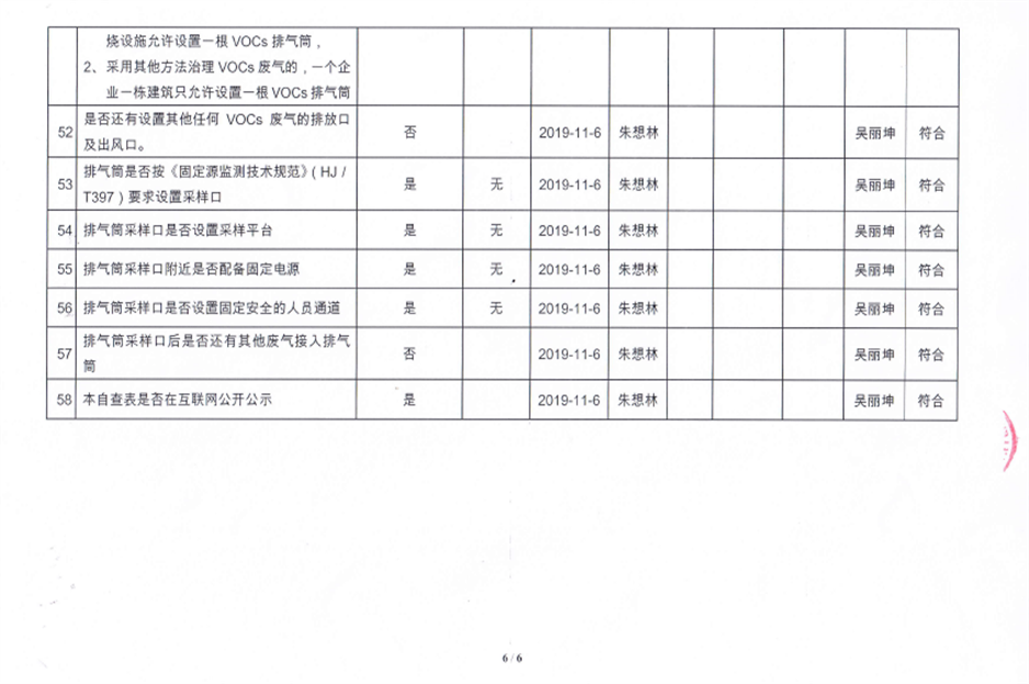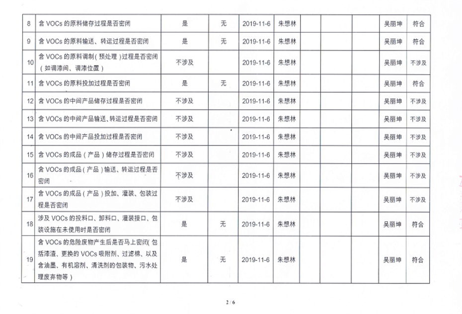 揮發性有機物污染防治企業自查表【2019(2)】