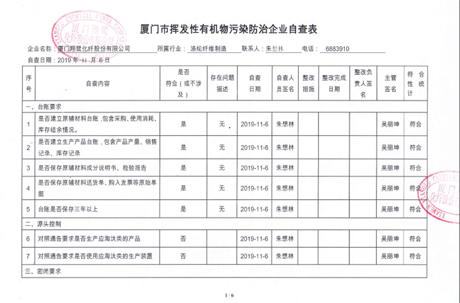 廈門市揮發性有機物污染防治企業自查表(2019年第四季度)