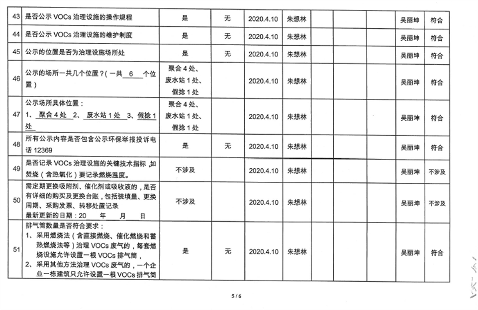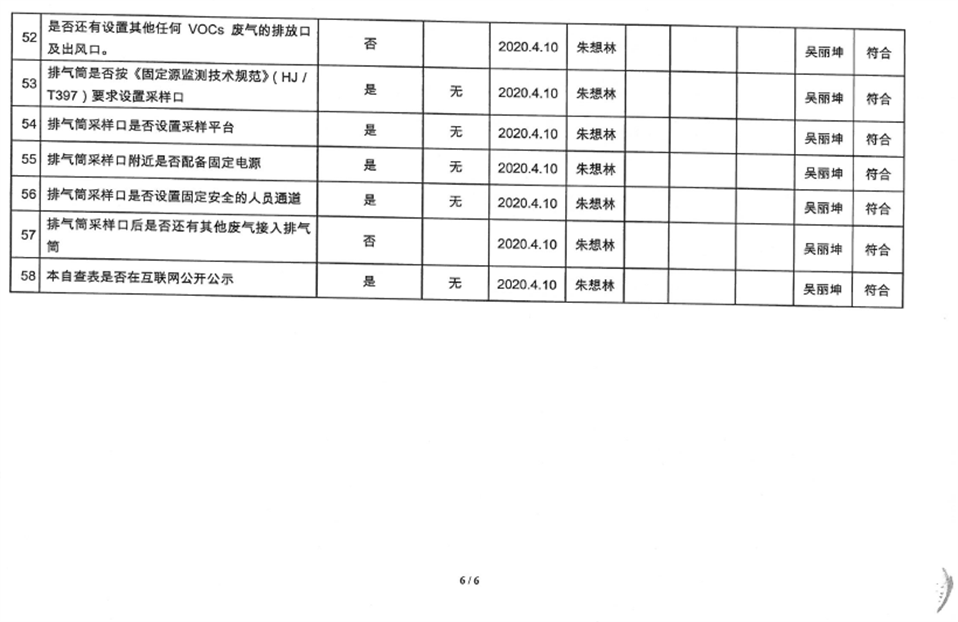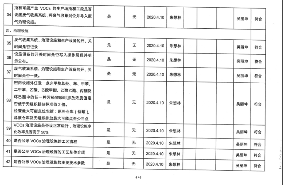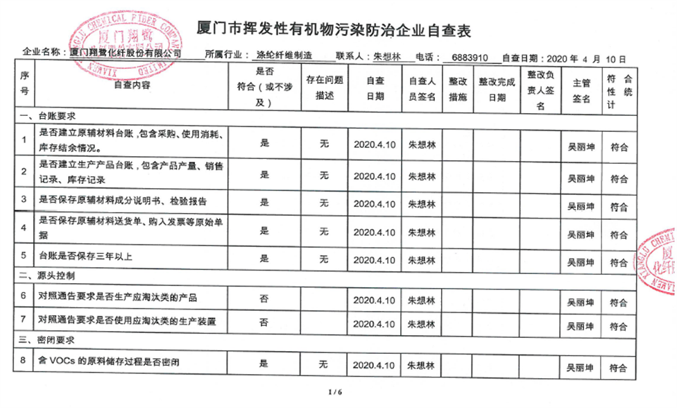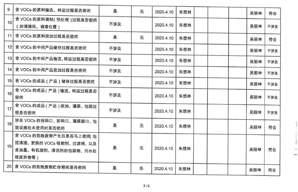 廈門市揮發性有機物污染防治企業自查表(2020年第二季度)