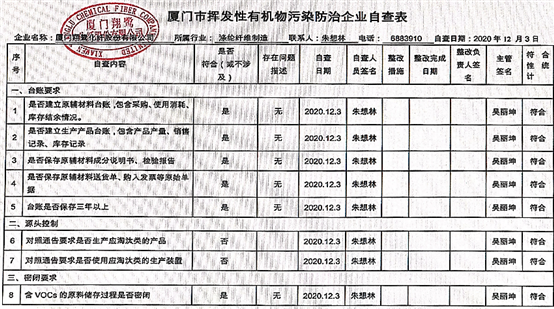 翔鷺化纖 廈門市揮發性有機物污染防治企業自查表 (2020年 第四季度).docx
