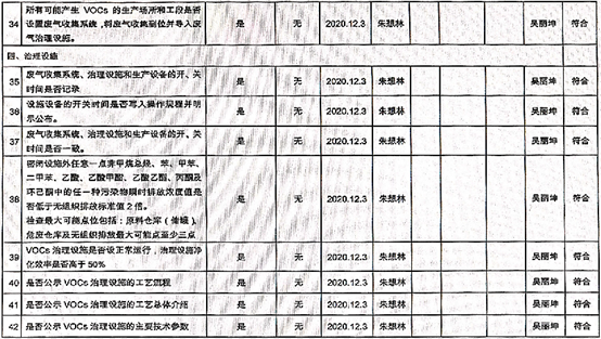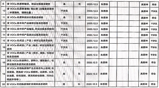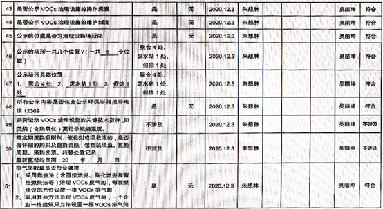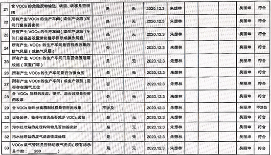 廈門市揮發性有機物污染防治企業自查表 (2020年 第四季度)