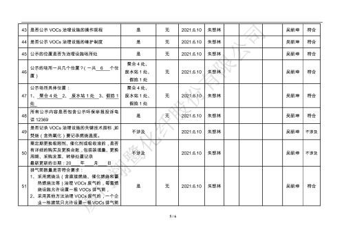 廈門市揮發性有機物污染防治企業自查表(2021年 第二季度)
